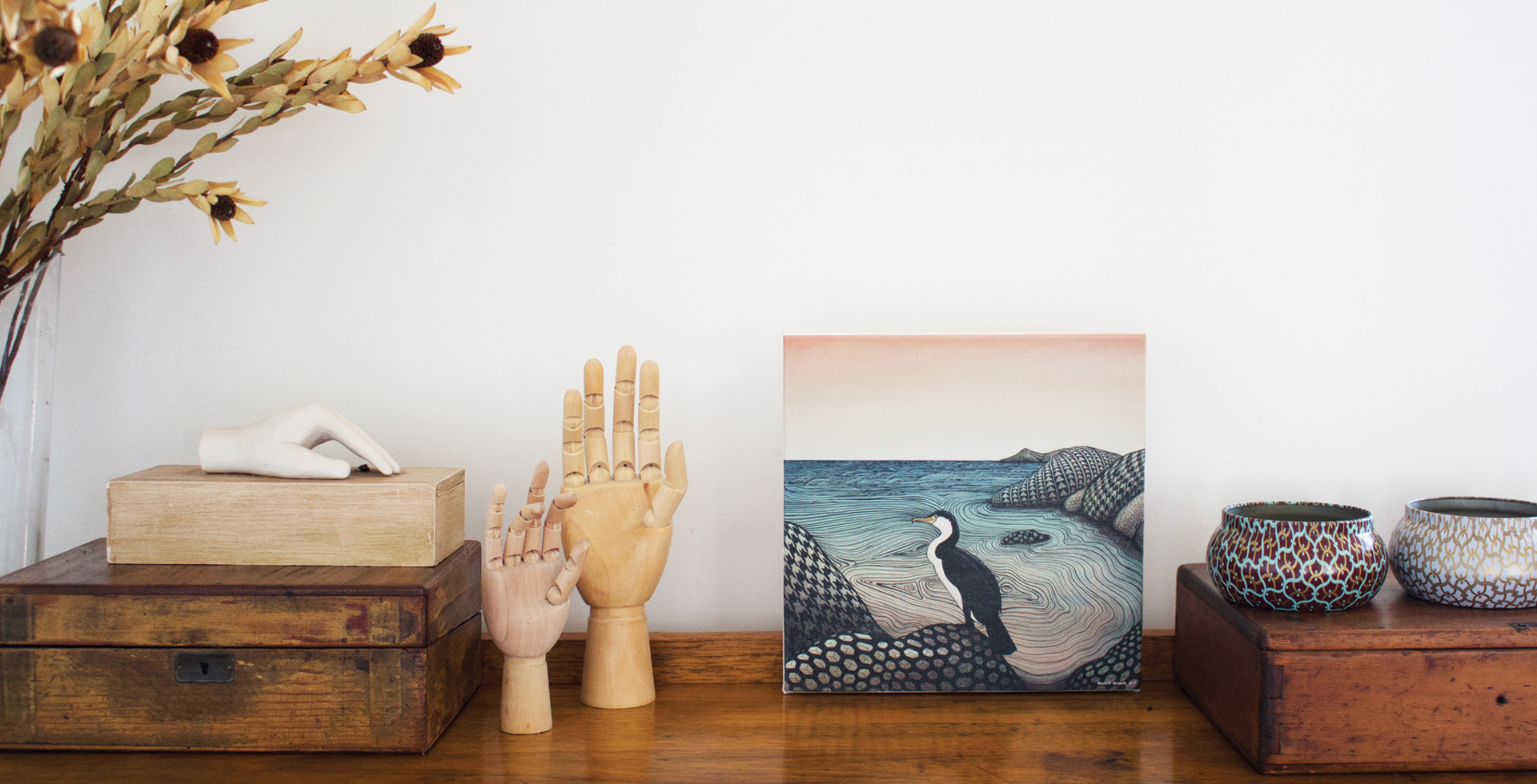 Fiona is a printmaker who creates wall prints using her lino print proofs and collaging them into prints, using wood, paint and paper. Natural themes are important to her work as they literally carve out the essence of landscape, flora and fauna. Her inspiration derives from the organic forms evident in nature and the urban environment around her home in Sydney’s inner west and Sydney Harbour.